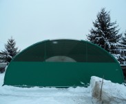 • Giebel mit 1/2 Windschutznetz und 1/2 Plane