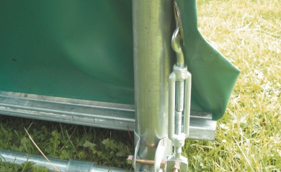 • Eindeckung mit hochwertigem und langlebigem PVC-beschichteten Polyestergewebe mit 670 g/m² (Typ LKW-Plane), 10 Jahre Garantie gegen UV-Strahlung